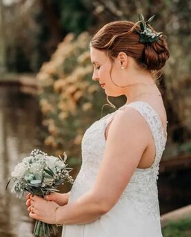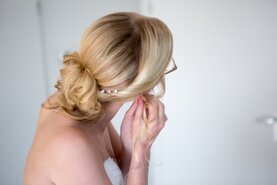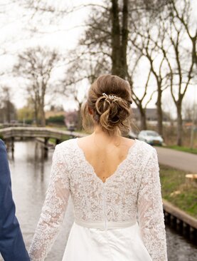 Een aantal weken voor de trouwdag kom ik bij je thuis voor de proefsessie. Hier bespreken we wat jouw wensen zijn en geef ik je een persoonlijk advies. Zo weten we precies wat bij jou en de bruidsjurk past. Ook op de bruiloft kom ik op de locatie waar jij je dag start. Doordat we een proefsessie hebben gedaan kan ik aan de slag om jou een perfect begin van jullie bijzondere trouwdag te geven!